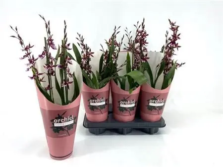 A Burrageara ‘Barrocco Red’, vagyis orchidea, egy ritka és különleges nemesített hibrid, amely a Miltonia, Cochlioda, Oncidium és Odontoglossum nemzetségek keresztezéséből született. Ennek köszönhetően egyedülálló szépségű virágokat hoz: mélyvörös, bársonyos szirmok, gazdag színárnyalatokkal és kecses formavilággal. A ‘Barrocco Red’ elegáns, hosszú virágszárain egyszerre több tucat virág nyílhat, így igazi ékszere lehet bármely otthonnak vagy irodának. A most elérhető példányok 12 cm-es cserépben, kb. 55 cm-es magasságban kaphatók.