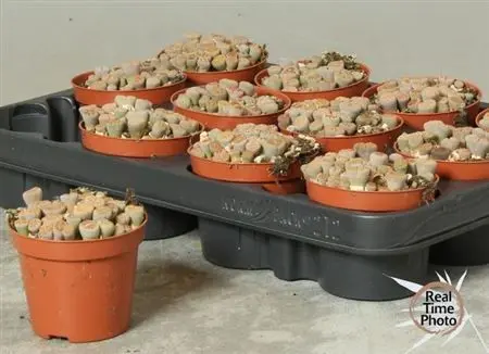 A Lithops Mix (kavicsvirág) Dél-Afrika száraz, napos területeiről származó különleges pozsgás válogatás, amely több szín- és mintaváltozatban elérhető. Minden növény egyedi, így a vásárló véletlenszerűen kap különböző formájú és árnyalatú példányokat. 5 cm-es cserépben kapható, kb. 12 cm magas növények.